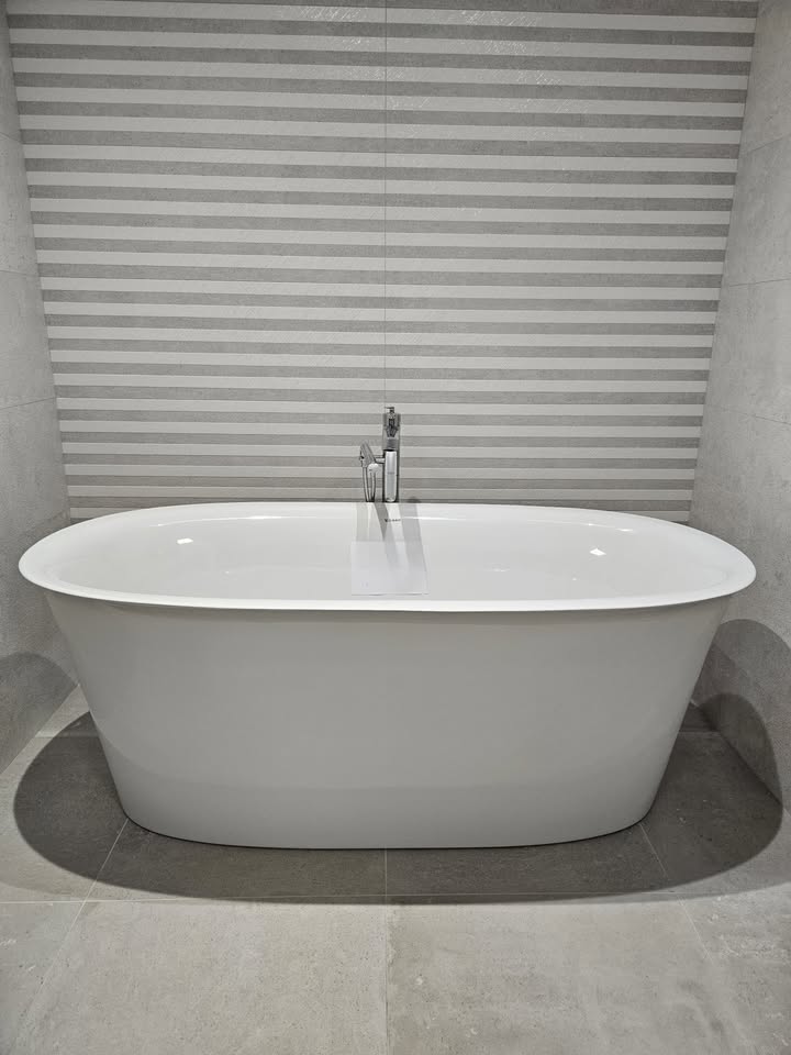 Duravit, White Tulip set includes ex-display items in immaculate condition: bathtub, wall hung storage unit, wall hung washbasin unit 2-drawer, basin, tap, handles.