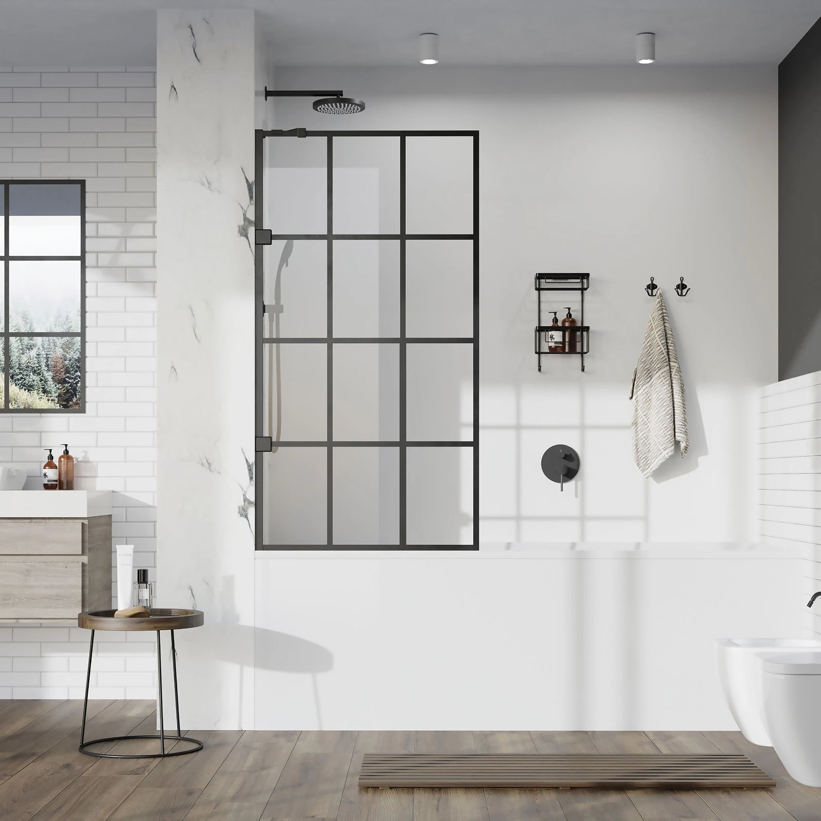 EX-DISPLAY Liberty Black Grid Bath Screen 800x1500 *Chipped Corner*