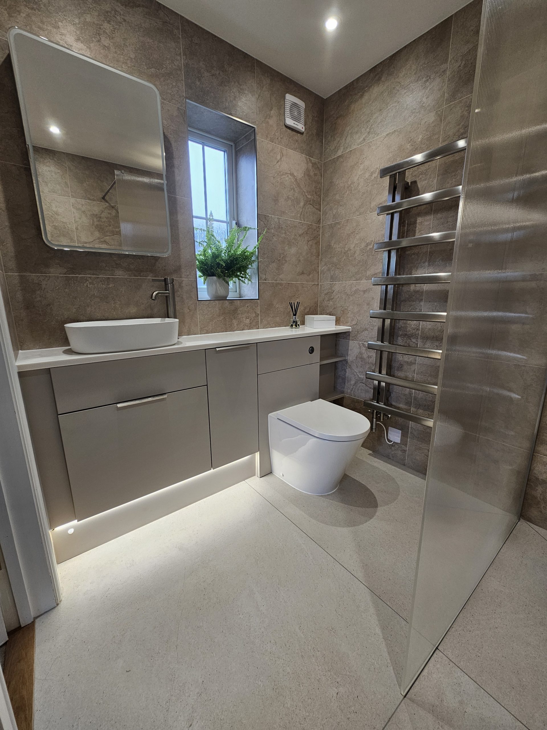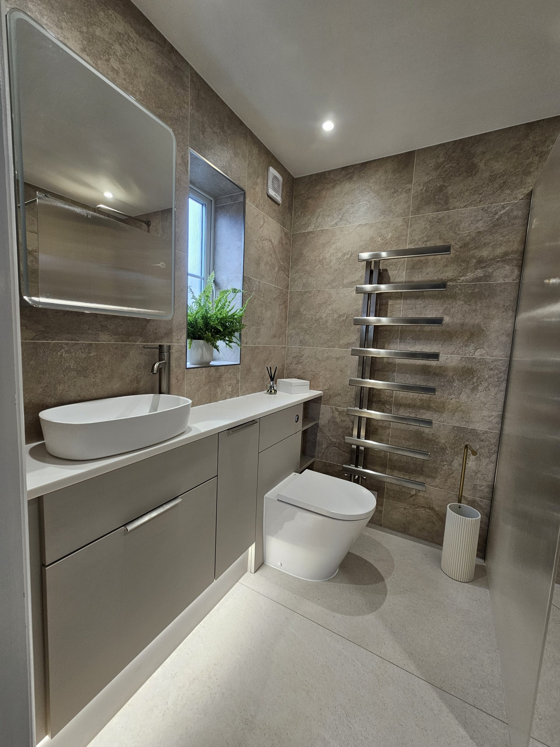 We were so impressed that we asked him to fit our new kitchen - which was a mammoth task relocating the kitchen to another room, with under floor works, and complete renovation of two rooms. If we need any further works we would most definitely instruct My Dream Bathrooms and can whole heartedly recommend to anyone (in fact we have done this already). No need to look any further... 5 stars +